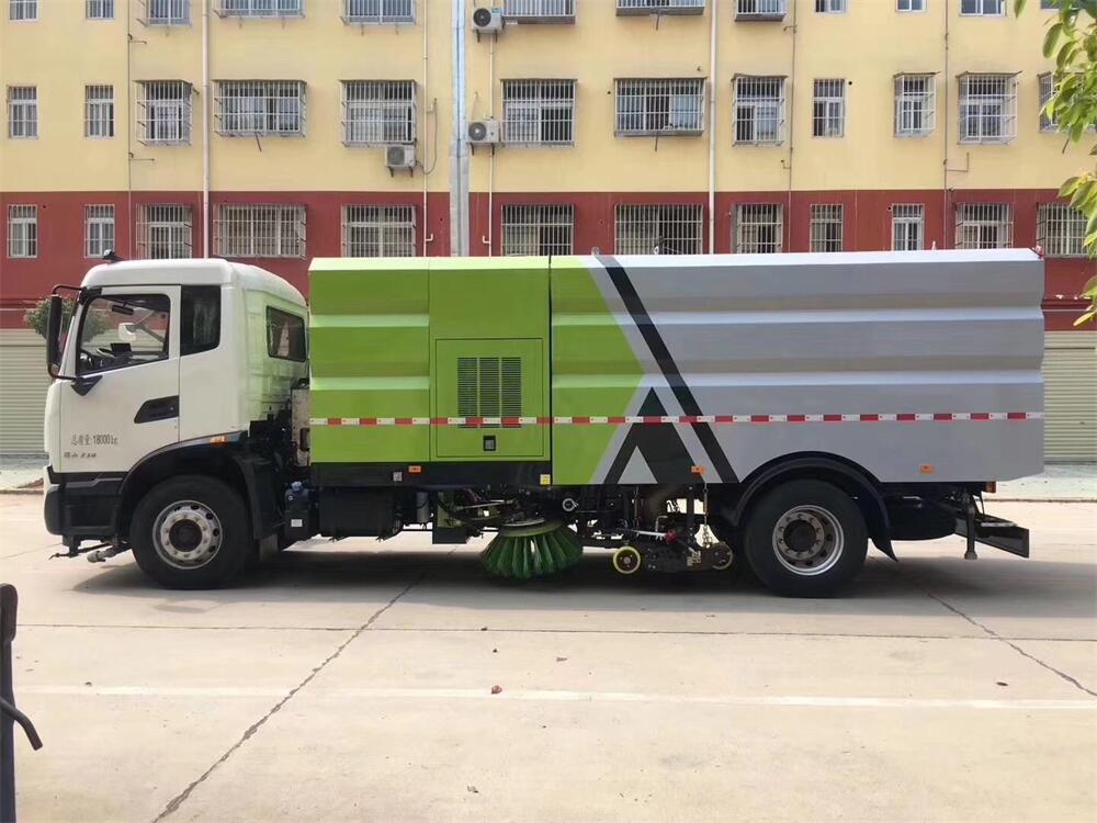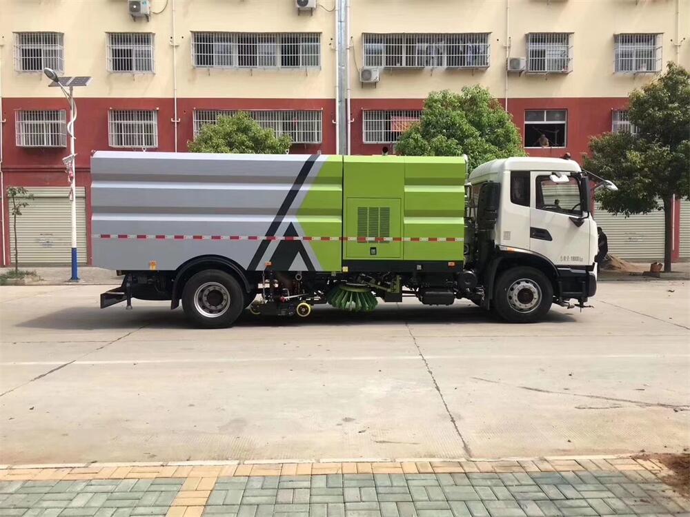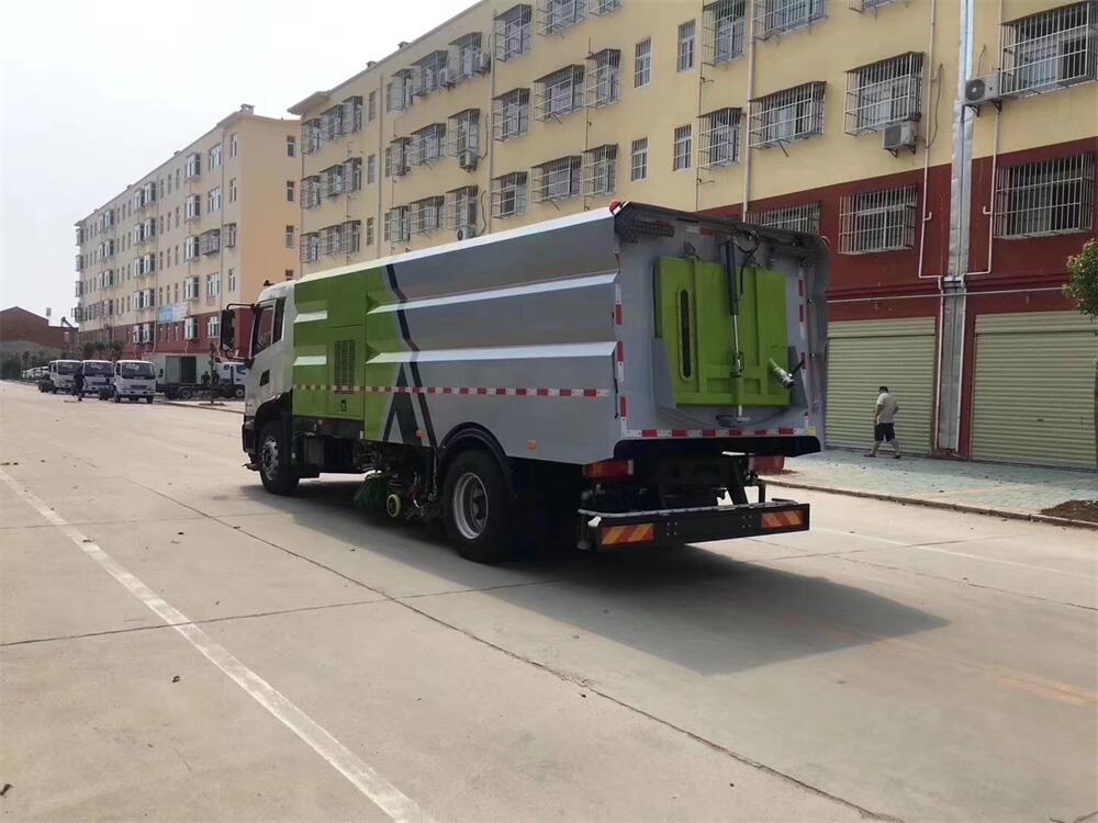 洗掃潔凈度高,該車型齊全的功能解決不同路面環境的作業,一次作業洗掃效率達98%以上,前沖功能、洗掃功能、路沿清洗功能、后噴霧功能、低壓沖洗功能以及采用的吸盤+左右側噴桿結構,路面、溝縫、彎道處、路沿上等處的灰塵、垃圾均能處理干凈,確保環境干凈、整潔。