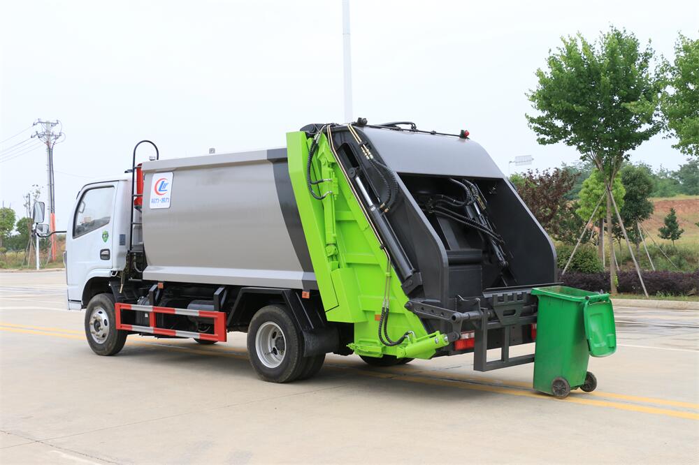 上裝配置:垃圾箱容積:6方,新款平面弧形廂體,廂體材料為武鋼優(yōu)質(zhì)碳鋼,PLC一鍵操作**,手電一體操作模式,兩側(cè)雙電控,帶駕駛室內(nèi)操作,底板支撐加強(qiáng),雙向壓縮,開放式易清潔污水箱。壓縮式垃圾車采用機(jī)電液一體化技術(shù),借助機(jī)、電、液聯(lián)合自動**系統(tǒng)、電腦**、手動操作系統(tǒng),通過填裝器和推鏟等專用裝置,實(shí)現(xiàn)垃圾倒入、壓碎或壓扁、強(qiáng)力裝填,把垃圾擠入車廂并壓實(shí)和推卸,污水全部進(jìn)入污水廂,解決了垃圾運(yùn)輸過程中的二次污染的問題。壓縮式垃圾車具有自動反復(fù)壓縮以及蠕動壓縮功能,壓縮比高、密封性好、裝載量大﹑操作方便、環(huán)保性好﹑整車?yán)霉β矢叩葍?yōu)點(diǎn)。作業(yè)自動化,垃圾收集方式簡便、高效。后翻轉(zhuǎn)機(jī)構(gòu)選裝:1、掛塑料桶式翻轉(zhuǎn)機(jī)構(gòu);2、掛鐵桶式翻轉(zhuǎn)機(jī)構(gòu);3、擺臂式翻轉(zhuǎn)機(jī)構(gòu); 4、簸箕斗式翻轉(zhuǎn)機(jī)構(gòu)。