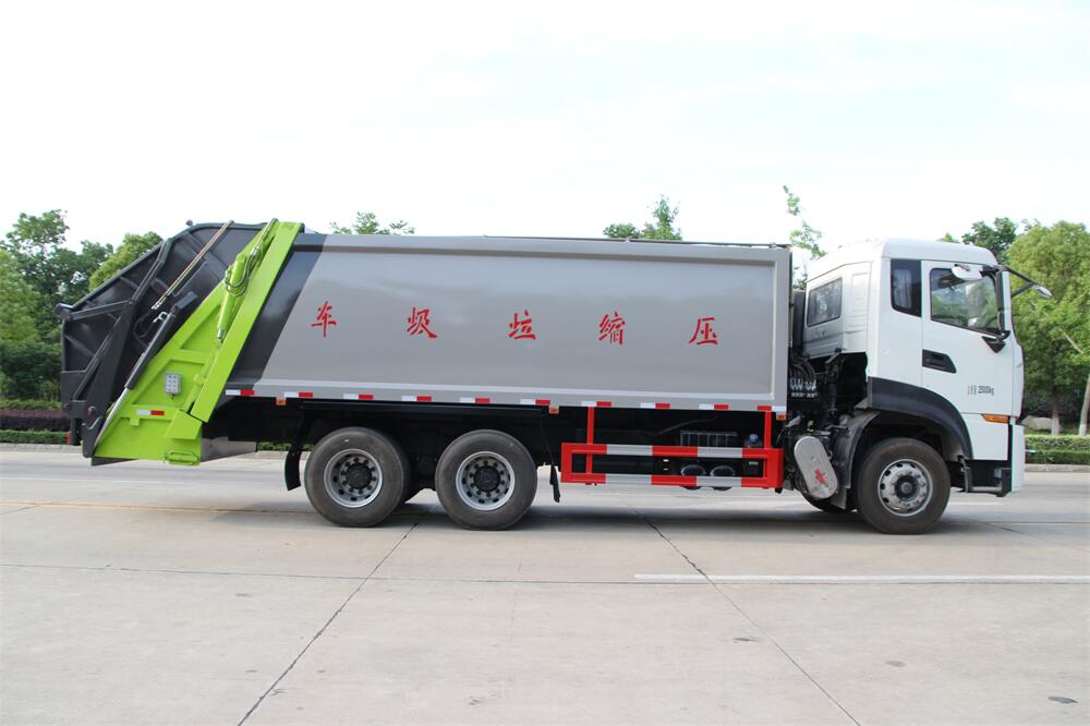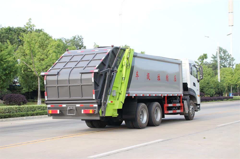 上裝配置:垃圾箱容積:18,20方選擇,新款平面弧形廂體,廂體材料為武鋼優(yōu)質(zhì)碳鋼,PLC一鍵操作**,手電一體操作模式,兩側(cè)雙電控,帶駕駛室內(nèi)操作,底板支撐加強(qiáng),雙向壓縮,開放式易清潔污水箱。壓縮式垃圾車采用機(jī)電液一體化技術(shù),借助機(jī)、電、液聯(lián)合自動**系統(tǒng)、電腦**、手動操作系統(tǒng),通過填裝器和推鏟等專用裝置,實現(xiàn)垃圾倒入、壓碎或壓扁、強(qiáng)力裝填,把垃圾擠入車廂并壓實和推卸,污水全部進(jìn)入污水廂,解決了垃圾運輸過程中的二次污染的問題。壓縮式垃圾車具有自動反復(fù)壓縮以及蠕動壓縮功能,壓縮比高、密封性好、裝載量大﹑操作方便、環(huán)保性好﹑整車?yán)霉β矢叩葍?yōu)點。作業(yè)自動化,垃圾收集方式簡便、高效。后翻轉(zhuǎn)機(jī)構(gòu)選裝:1、掛塑料桶式翻轉(zhuǎn)機(jī)構(gòu);2、掛鐵桶式翻轉(zhuǎn)機(jī)構(gòu);3、擺臂式翻轉(zhuǎn)機(jī)構(gòu); 4、簸箕斗式翻轉(zhuǎn)機(jī)構(gòu)。