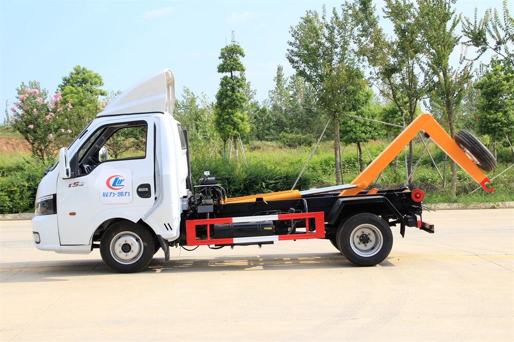 勾臂式垃圾車(車廂可卸式垃圾車)介紹: 車廂可卸式垃圾車又叫拉臂式垃圾車,是一種采用高新設(shè)計(jì)可伸縮的鉤臂,實(shí)現(xiàn)垃圾廂的二次吊裝,自吊上放下,可自行傾倒垃圾的環(huán)衛(wèi)設(shè)備。 拉臂式垃圾車結(jié)構(gòu)簡(jiǎn)單,操作穩(wěn)定方便,裝卸效率高,機(jī)械化程度高,節(jié)省人力。鉤臂垃圾車一車可帶多個(gè)垃圾廂,在裝卸的運(yùn)輸過(guò)程中可有效地避免二次污染。 拉臂垃圾車采用高新設(shè)計(jì)可擺動(dòng)的鉤臂,垃圾箱由框架、開(kāi)啟油缸、滑輪、后門和若干加強(qiáng)框架與鋼板焊接而成。調(diào)換貨廂快捷方便,貨廂上帶蓋(倒垃圾時(shí)可翻開(kāi)),鉤臂垃圾車?yán)鴰w可選用碳鋼、不銹鋼材質(zhì)、內(nèi)部采取環(huán)氧樹(shù)脂防腐處理,改裝部分與原車底盤為可分離式,維修方便且保持了原車的機(jī)動(dòng)性及行駛性能。