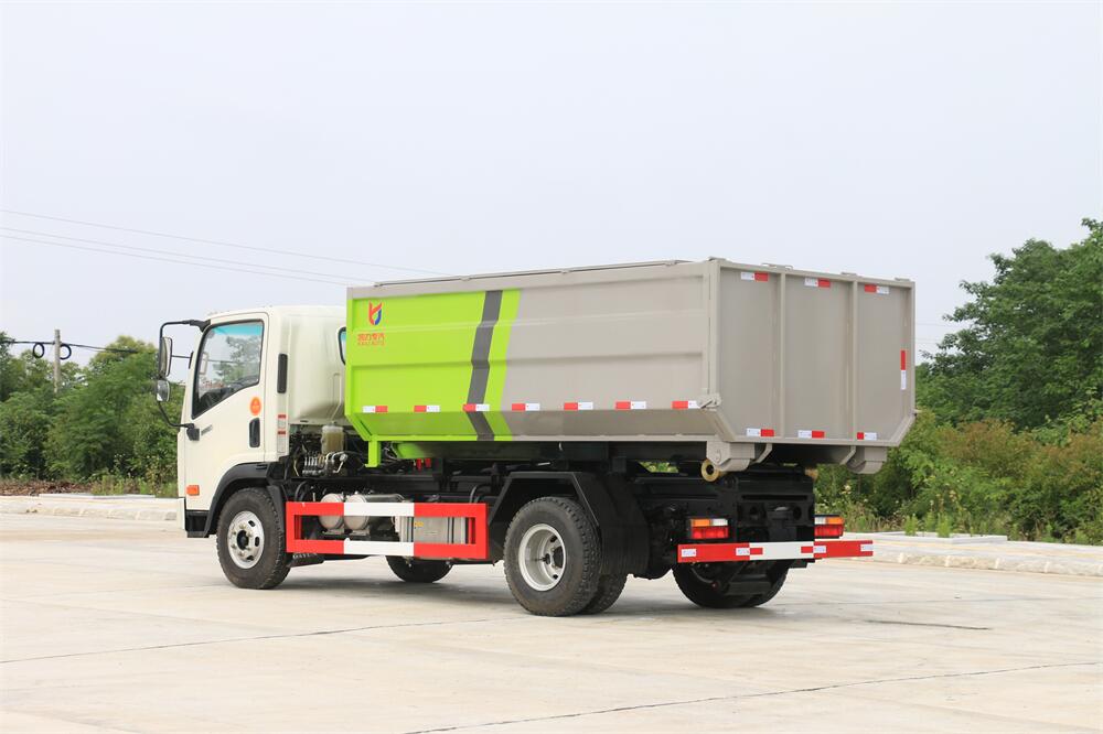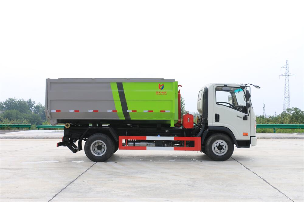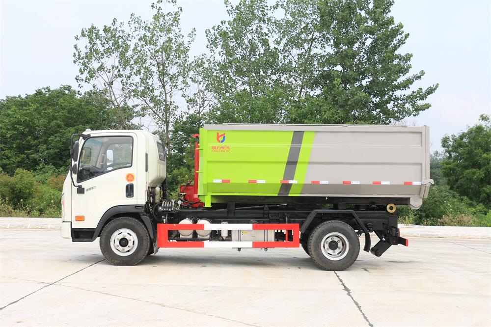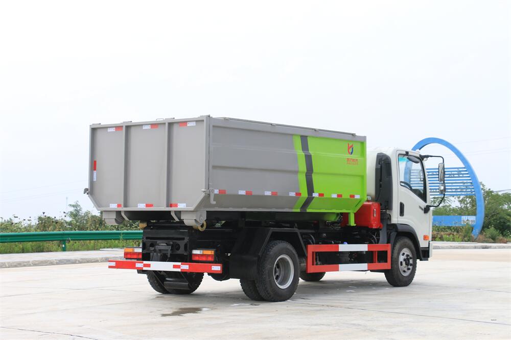 勾臂式垃圾車(車廂可卸式垃圾車)介紹: 車廂可卸式垃圾車又叫拉臂式垃圾車,是一種采用高新設(shè)計(jì)可伸縮的鉤臂,實(shí)現(xiàn)垃圾廂的二次吊裝,自吊上放下,可自行傾倒垃圾的環(huán)衛(wèi)設(shè)備。 拉臂式垃圾車結(jié)構(gòu)簡(jiǎn)單,操作穩(wěn)定方便,裝卸效率高,機(jī)械化程度高,節(jié)省人力。鉤臂垃圾車一車可帶多個(gè)垃圾廂,在裝卸的運(yùn)輸過程中可有效地避免二次污染。 拉臂垃圾車采用高新設(shè)計(jì)可擺動(dòng)的鉤臂,垃圾箱由框架、開啟油缸、滑輪、后門和若干加強(qiáng)框架與鋼板焊接而成。調(diào)換貨廂快捷方便,貨廂上帶蓋(倒垃圾時(shí)可翻開),鉤臂垃圾車?yán)鴰w可選用碳鋼、不銹鋼材質(zhì)、內(nèi)部采取環(huán)氧樹脂防腐處理,改裝部分與原車底盤為可分離式,維修方便且保持了原車的機(jī)動(dòng)性及行駛性能。