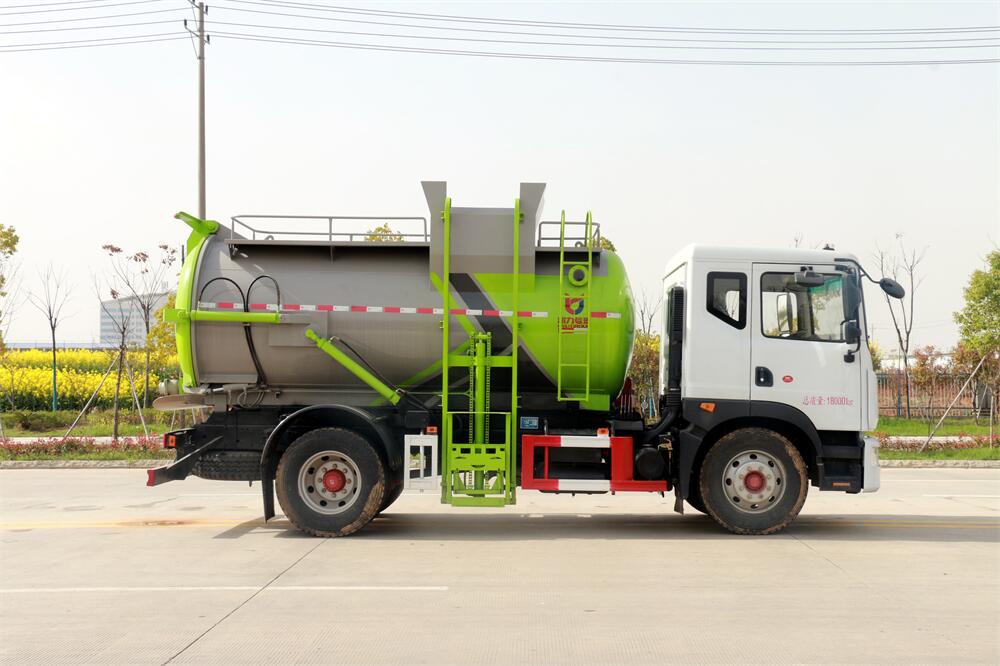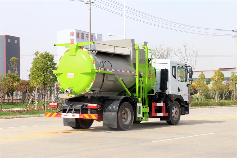 上裝配置:罐體容積10m3,配備120L/240L掛桶提升翻轉(zhuǎn)機(jī)構(gòu),液壓系統(tǒng),后蓋液壓鎖緊開(kāi)啟,罐體可以舉升自卸,尾部帶自流閥;用于運(yùn)輸液態(tài)垃圾,其特點(diǎn)操作簡(jiǎn)單,密封性好,無(wú)泄漏,無(wú)異味;可選裝固液分離功能,推板擠壓功能,常用于餐館的垃圾轉(zhuǎn)運(yùn)處理。