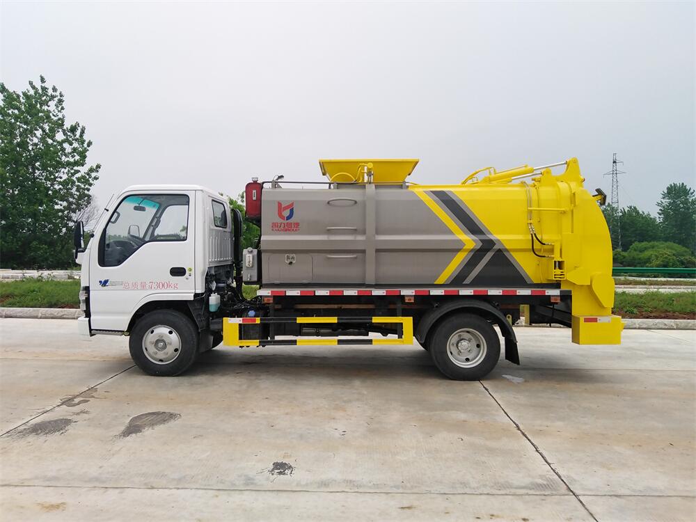 上裝配置:罐體容積6m3,配備120L/240L掛桶提升翻轉(zhuǎn)機(jī)構(gòu),液壓系統(tǒng),后蓋液壓鎖緊開啟,罐體可以舉升自卸,尾部帶自流閥;用于運(yùn)輸液態(tài)垃圾,其特點(diǎn)操作簡單,密封性好,無泄漏,無異味;可選裝固液分離功能,推板擠壓功能,常用于餐館的垃圾轉(zhuǎn)運(yùn)處理。