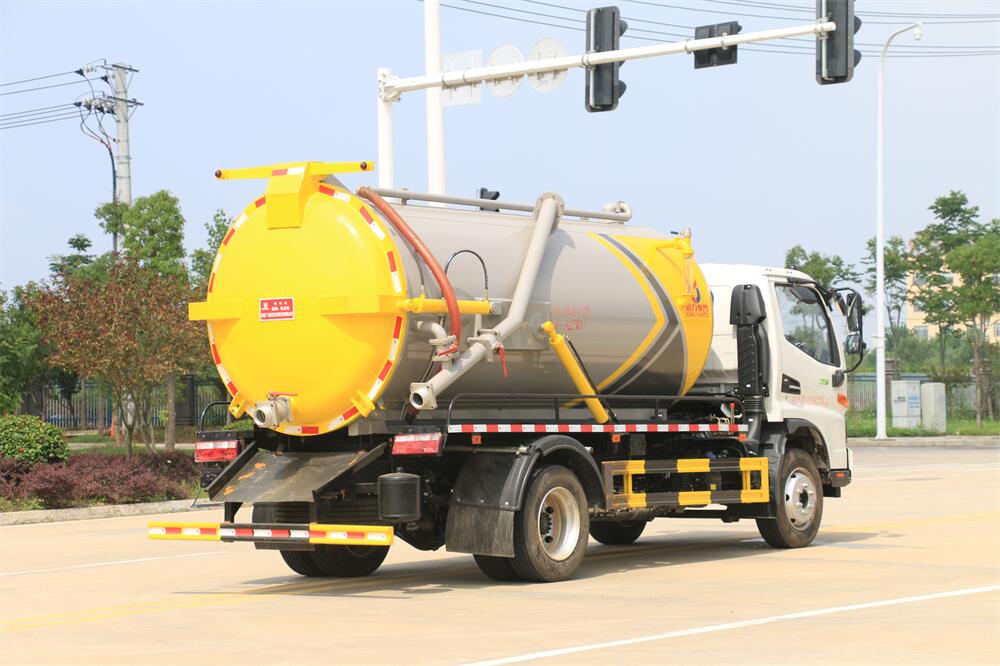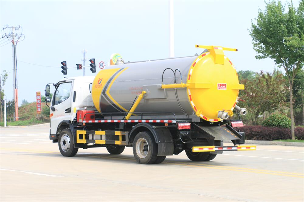 5.液壓舉升自卸功能,便于將各種污物傾倒干凈,后罐門可以液壓啟動(dòng)開啟,便于清理罐體內(nèi)的沉積物,凝固物及對(duì)罐體內(nèi)部進(jìn)行維修、保養(yǎng),液壓取力增強(qiáng)了系統(tǒng)的穩(wěn)定性。