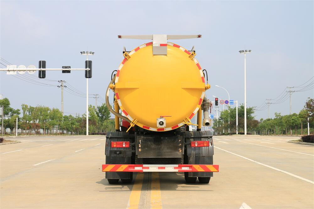 5.液壓舉升自卸功能,便于將各種污物傾倒干凈,后罐門可以液壓啟動開啟,便于清理罐體內的沉積物,凝固物及對罐體內部進行維修、保養,液壓取力增強了系統的穩定性。