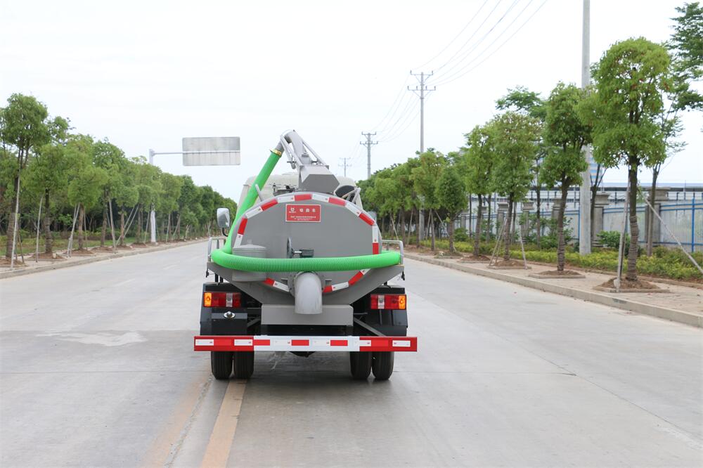 上裝配置:5T真空油泵(SK-9水循環(huán)泵), 油水分離器 ,防溢閥,視糞管,洗水箱,吊桿座(可270度旋轉(zhuǎn)),尾部一個220排糞口帶駕駛室操作,一根6米吸糞管帶陰陽端快接頭。