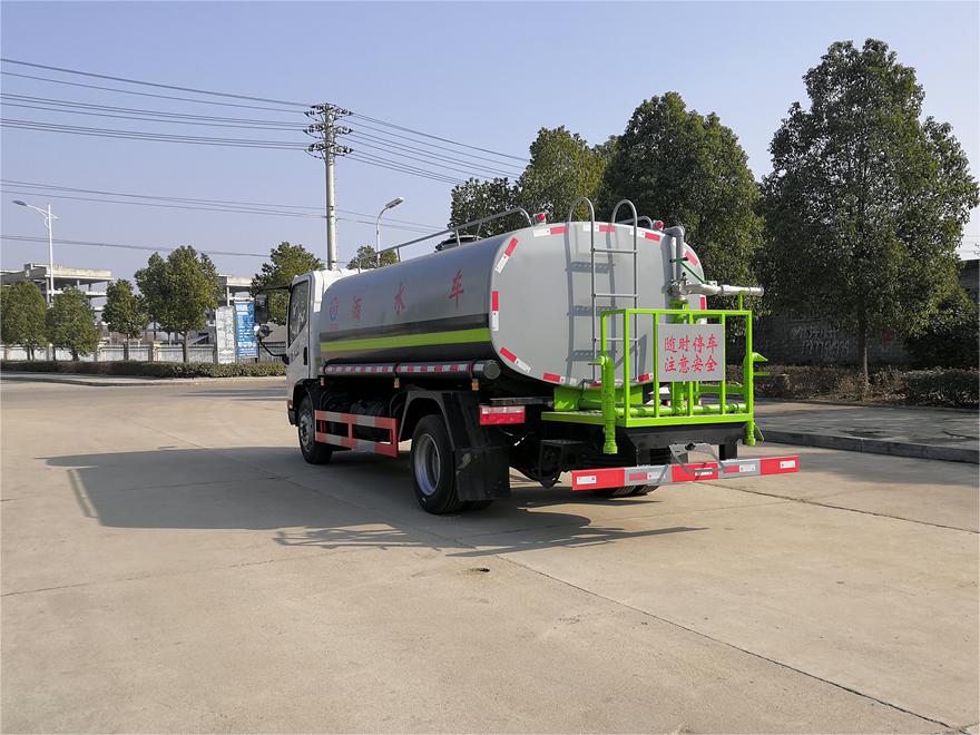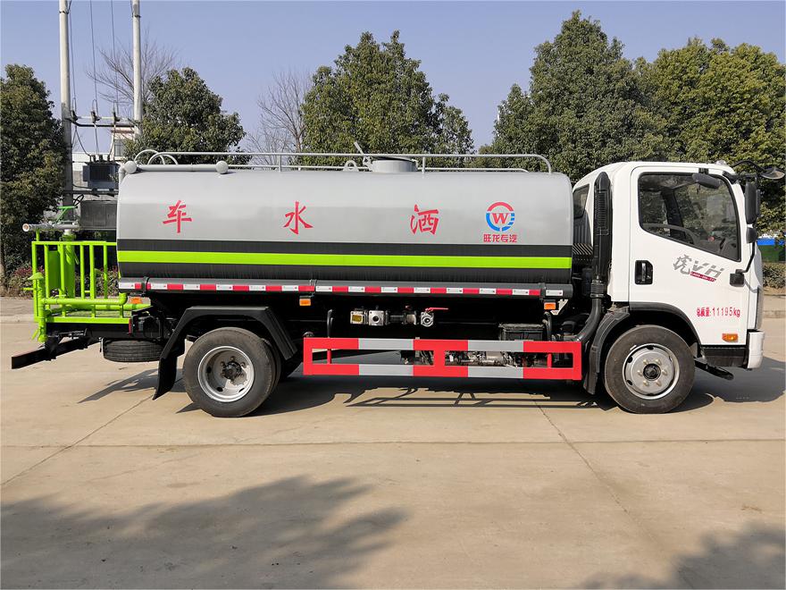 灑水車性能特點(diǎn):前沖(噴)后灑,帶側(cè)噴,罐體后帶工作平臺(tái),平臺(tái)上安裝綠化灑水炮,灑水炮可360旋轉(zhuǎn),可連續(xù)調(diào)成直沖狀、大雨、小雨、毛毛雨,帶安全護(hù)欄,配備全國(guó)質(zhì)量評(píng)比**名的杭州威龍大功率專用  灑水泵,泵可自吸自排,安裝過(guò)濾網(wǎng),帶消防接口,可通過(guò)消防栓進(jìn)水,帶自流閥,隨車選裝20米綠化卷盤,可噴灑農(nóng)藥。