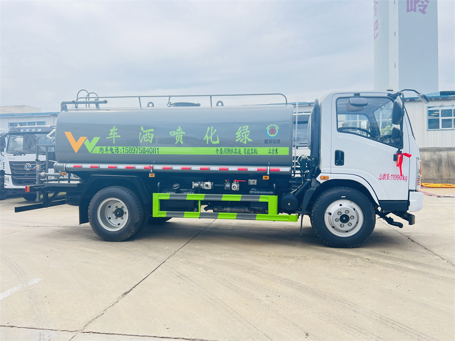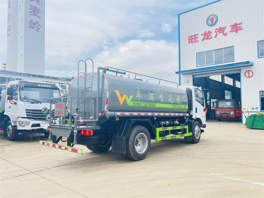 灑水車性能特點:前沖(噴)后灑,帶側(cè)噴,罐體后帶工作平臺,平臺上安裝綠化灑水炮,灑水炮可360旋轉(zhuǎn),可連續(xù)調(diào)成直沖狀、大雨、小雨、毛毛雨,帶安全護欄,配備全國質(zhì)量評比**名的杭州威龍大功率專用  灑水泵,泵可自吸自排,安裝過濾網(wǎng),帶消防接口,可通過消防栓進水,帶自流閥,隨車選裝20米綠化卷盤,可噴灑農(nóng)藥。