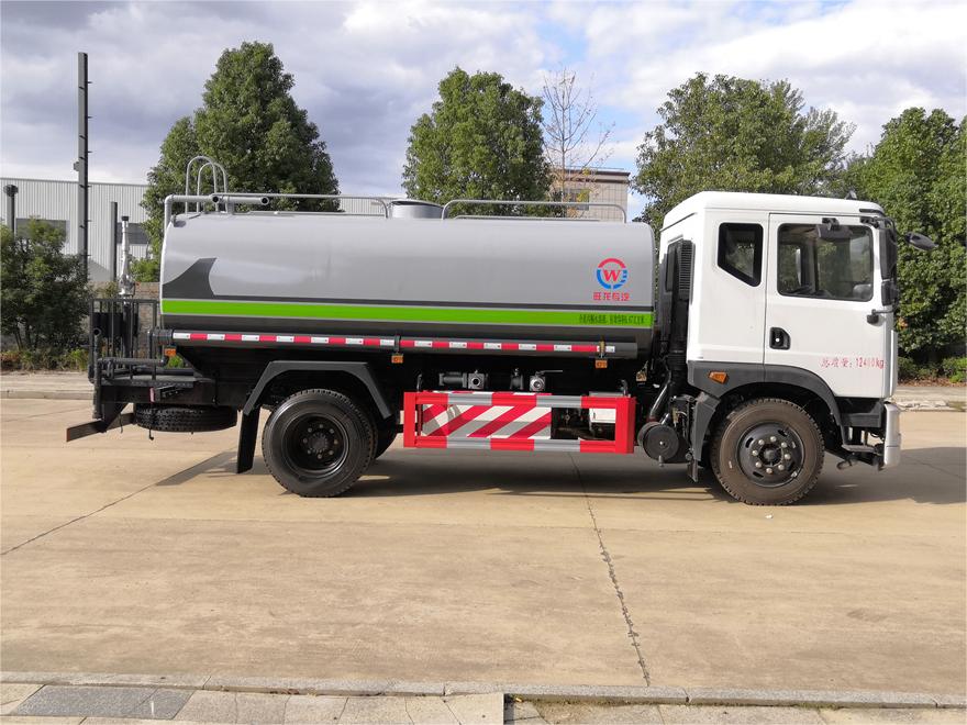 灑水車性能特點(diǎn):前沖(噴)后灑,帶側(cè)噴,罐體后帶工作平臺(tái),平臺(tái)上安裝綠化灑水炮,灑水炮可360旋轉(zhuǎn),可連續(xù)調(diào)成直沖狀、大雨、小雨、毛毛雨,帶安全護(hù)欄,配備全國(guó)質(zhì)量評(píng)比**名的杭州威龍大功率專用 灑水泵,泵可自吸自排,安裝過(guò)濾網(wǎng),帶消防接口,可通過(guò)消防栓進(jìn)水,帶自流閥,隨車選裝20米綠化卷盤,可噴灑農(nóng)藥。