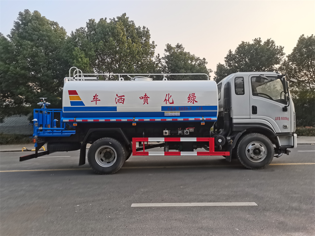 灑水車性能特點:前沖(噴)后灑,帶側噴,罐體后帶工作平臺,平臺上安裝綠化灑水炮,灑水炮可360旋轉,可連續調成直沖狀、大雨、小雨、毛毛雨,帶安全護欄,配備全國質量評比**名的杭州威龍大功率專用  灑水泵,泵可自吸自排,安裝過濾網,帶消防接口,可通過消防栓進水,帶自流閥,隨車選裝20米綠化卷盤,可噴灑農藥。