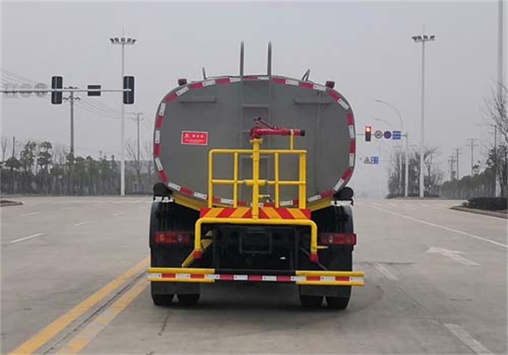 灑水車前裝有鴨形噴嘴或圓頭沖嘴,后面裝有圓柱開灑水噴嘴或蓮蓬頭噴嘴,后部有一工作平臺(tái),裝配有水炮。后部還可裝8個(gè)噴嘴(選裝)。