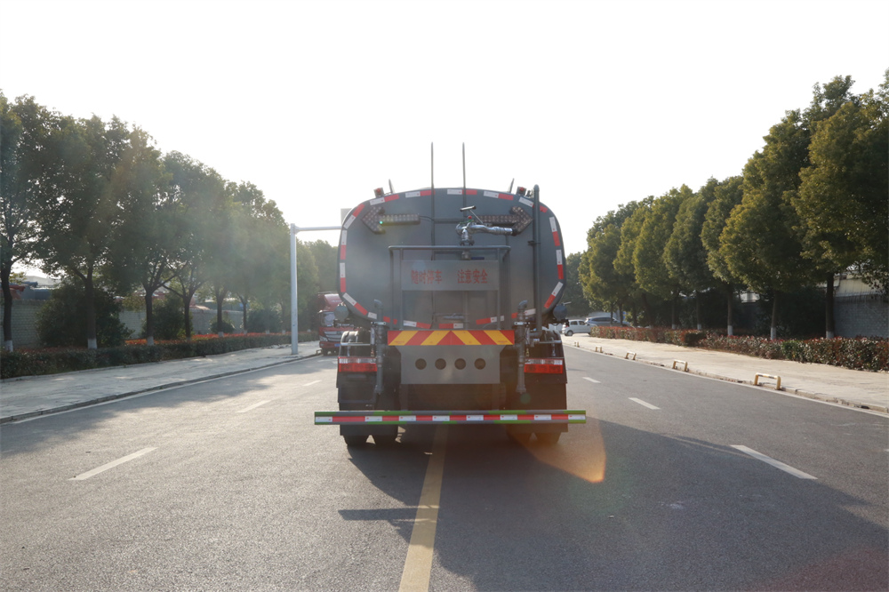 灑水車前裝有鴨形噴嘴或圓頭沖嘴,后面裝有圓柱開灑水噴嘴或蓮蓬頭噴嘴,后部有一工作平臺(tái),裝配有水炮。后部還可裝8個(gè)噴嘴(選裝)。