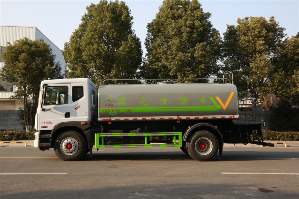 灑水車性能特點(diǎn):前沖(噴)后灑,帶側(cè)噴,罐體后帶工作平臺(tái),平臺(tái)上安裝綠化灑水炮,灑水炮可360旋轉(zhuǎn),可連續(xù)調(diào)成直沖狀、大雨、小雨、毛毛雨,帶安全護(hù)欄,配備全國(guó)質(zhì)量評(píng)比**名的杭州威龍大功率專用  灑水泵,泵可自吸自排,安裝過(guò)濾網(wǎng),帶消防接口,可通過(guò)消防栓進(jìn)水,帶自流閥,隨車選裝20米綠化卷盤,可噴灑農(nóng)藥。