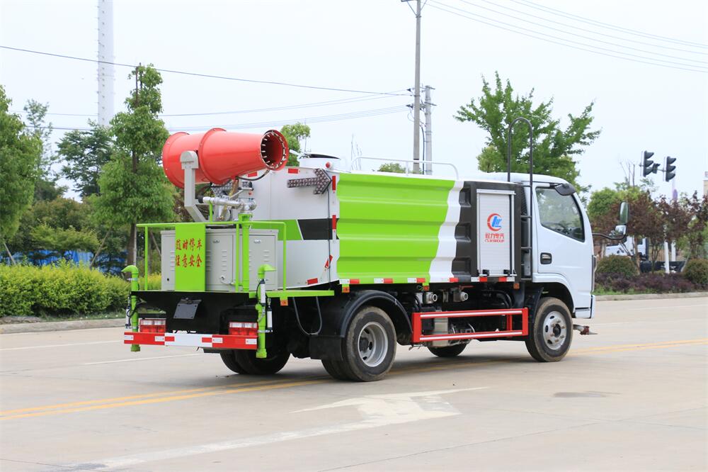 上裝配置:罐體容積為 5-7立方,選配風(fēng)送式霧炮機(jī)組射程30米、40米、50米、60米、80米、100米、120米霧炮,罐體鋼板為4mm碳鋼Q235材質(zhì),罐內(nèi)隔板具有防波作用,以減輕汽車(chē)行駛時(shí)罐體液體沖擊,罐體及整車(chē)外形尺寸按照公告。帶大功率專(zhuān)用灑水泵,泵可自吸自排,整車(chē)前沖、后灑、側(cè)噴、帶65消防接口,后平臺(tái)配CLW-50、CLW-60、CLW-80、CLW-100、CLW-120型風(fēng)送式霧炮機(jī)組;罐體前封頭配大功率柴油發(fā)電機(jī)組;前封頭帶水位計(jì),后平臺(tái)主管路帶1寸澆花接口,后爬梯。帶兩根輸水管及陰陽(yáng)端。罐體顏色:銀/灰/綠,罐體兩側(cè)噴“多功能抑塵車(chē)”字樣,貼反光標(biāo)示。