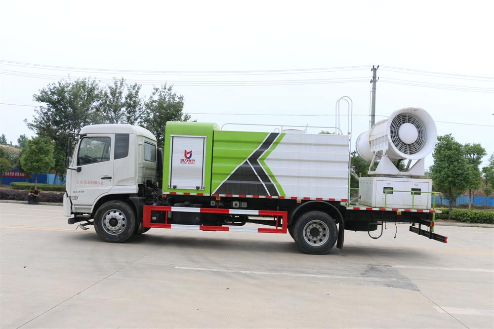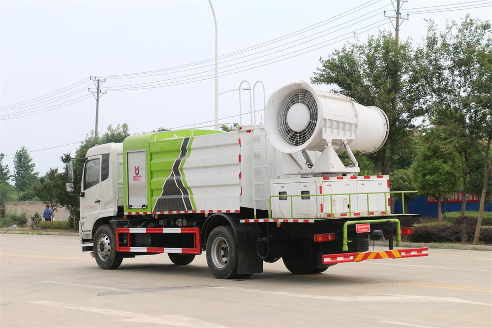 上裝配置:罐體容積為 12立方,選配風(fēng)送式霧炮機(jī)組射程30米、40米、50米、60米、80米、100米、120米霧炮,罐體鋼板為4mm碳鋼Q235材質(zhì),罐內(nèi)隔板具有防波作用,以減輕汽車行駛時(shí)罐體液體沖擊,罐體及整車外形尺寸按照公告。帶大功率專用灑水泵,泵可自吸自排,整車前沖、后灑、側(cè)噴、帶65消防接口,后平臺配CLW-50、CLW-60、CLW-80、CLW-100、CLW-120型風(fēng)送式霧炮機(jī)組;罐體前封頭配大功率柴油發(fā)電機(jī)組;前封頭帶水位計(jì),后平臺主管路帶1寸澆花接口,后爬梯。帶兩根輸水管及陰陽端。罐體顏色:銀/灰/綠,罐體兩側(cè)噴“多功能抑塵車”字樣,貼反光標(biāo)示。