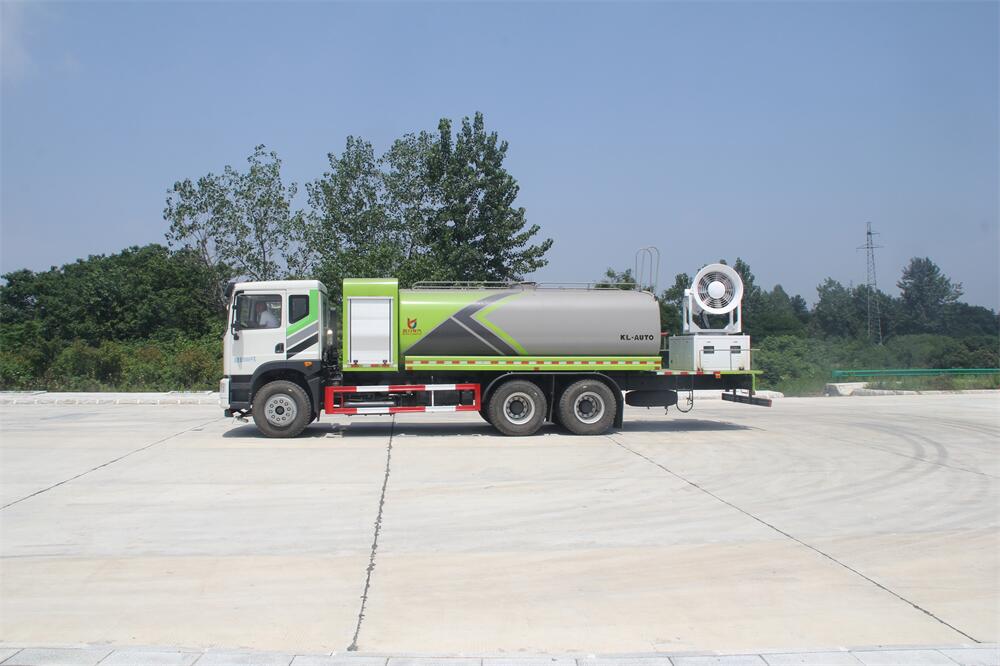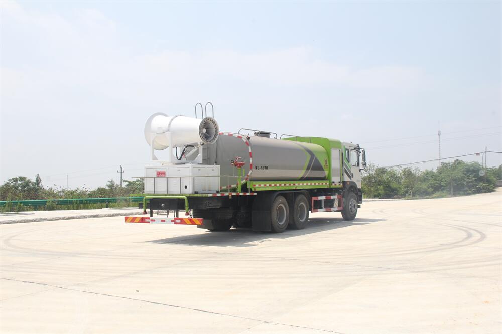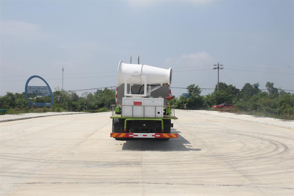 上裝配置:罐體容積為 16立方,選配風(fēng)送式霧炮機(jī)組射程30米、40米、50米、60米、80米、100米、120米霧炮,罐體鋼板為4mm碳鋼Q235材質(zhì),罐內(nèi)隔板具有防波作用,以減輕汽車行駛時(shí)罐體液體沖擊,罐體及整車外形尺寸按照公告。帶大功率專用灑水泵,泵可自吸自排,整車前沖、后灑、側(cè)噴、帶65消防接口,后平臺(tái)配CLW-50、CLW-60、CLW-80、CLW-100、CLW-120型風(fēng)送式霧炮機(jī)組;罐體前封頭配大功率柴油發(fā)電機(jī)組;前封頭帶水位計(jì),后平臺(tái)主管路帶1寸澆花接口,后爬梯。帶兩根輸水管及陰陽端。罐體顏色:銀/灰/綠,罐體兩側(cè)噴“多功能抑塵車”字樣,貼反光標(biāo)示。