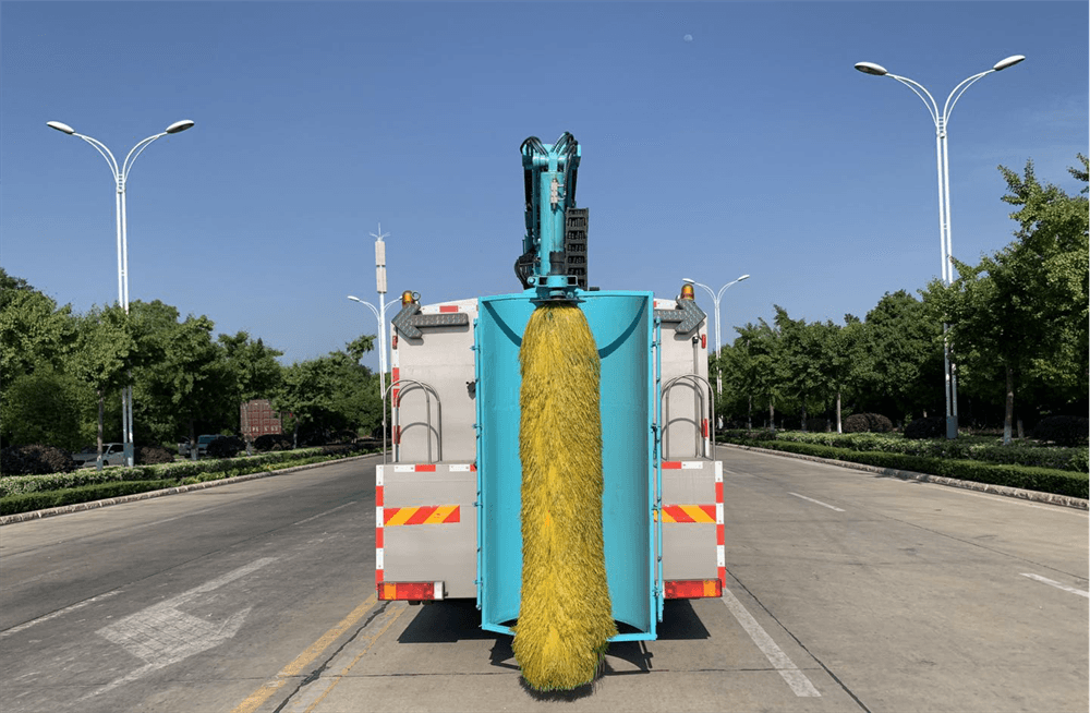 HCQ5250TXQDF6隔音屏清洗車的基本工作原理是利用安裝在回轉支承的折疊筆架上的直徑為1000MM,長2000MM的高速旋轉(385R/MIN)的圓柱滾刷一邊噴射洗滌劑與清洗,一邊滾刷,能連續清洗2M寬的墻面。由于洗刷都安裝在回轉支承上可以左右旋轉,所以墻面清洗車可在不換向的情況下,洗刷兩邊的墻面。此外洗刷還可以清洗路標、廣告牌、高架橋等。本隔音屏清洗車的液壓、電氣元件采用國際**產品,性能優良、工作可靠。