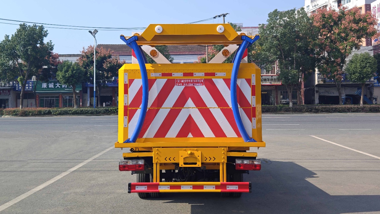 上裝配置:采用Q235國(guó)標(biāo)邊板,底板花紋板,不銹鋼合頁(yè),箱體后部防撞緩沖模塊包采用暢行達(dá)70K防撞緩沖模塊,防撞緩沖吸能模塊主要由車(chē)載防撞緩沖墊和導(dǎo)向標(biāo)志架組成,充當(dāng)施工作業(yè)車(chē)輛后方的緩沖衛(wèi)士。