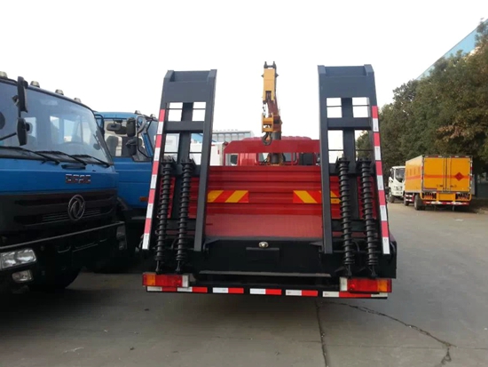★隨車起重運輸車采用新型H型支腿,各支腿可單獨調節以調整車架水平,支腿跨距大,整機穩定性好。左右雙向操作,回轉角度:±360度、連續回轉,手油門可調節回轉速度和起吊速度。