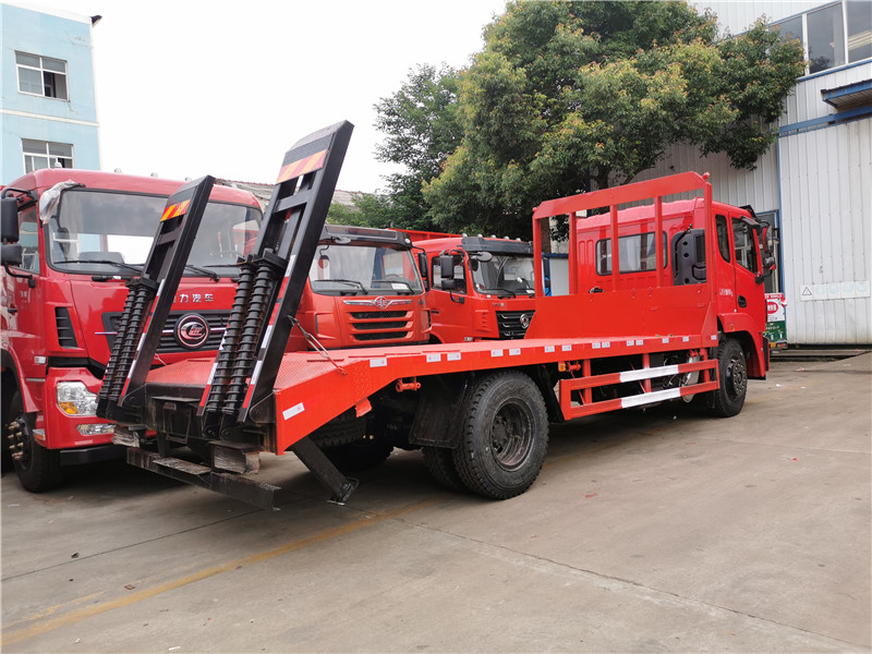 東風錦程單橋平板運輸車 **新款東風駕駛室 發動機:玉柴4缸180馬力/玉柴6缸200馬力 變速箱:陜齒8檔 前后橋:5T/9T或10T 可選軸距:4.5米/4.7米/5.1米 輪胎:10.00R20 大梁:280雙層直通大梁 整車對應尺寸:長度8400/8600/9000寬度*2500/2550*高度3100 車型亮點:ABS防抱死系統 .大燈高低調節. 剎車間隙自動調整臂. 防飛濺. 空氣座椅.齊星**駕駛室,兩點懸浮,電動玻璃,液晶顯示屏,倒車影像,手機藍牙互聯,ABS,原廠空調,LED行車燈。 上裝采用五毫米花紋鋼板,120*120方鋼做橫梁,加強型雙爬梯,可定做液壓爬梯.可承載15-18噸挖機。