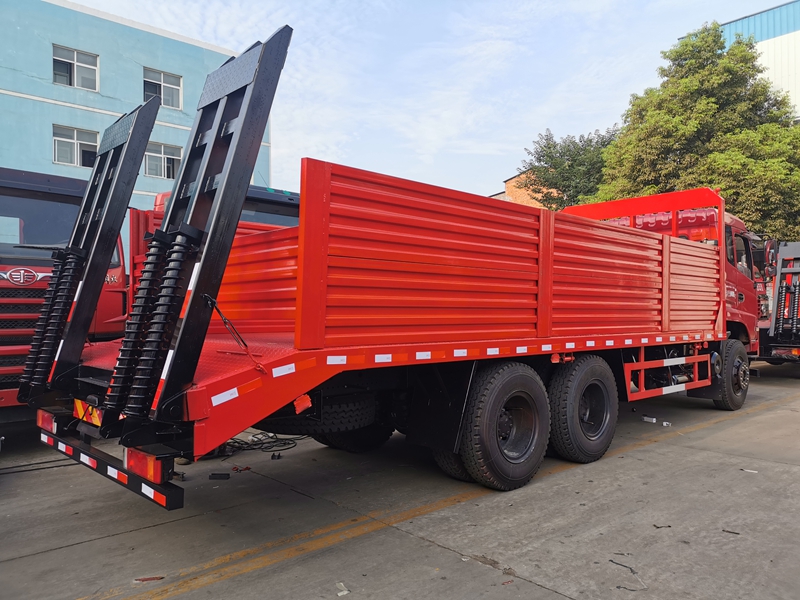 上裝采用八毫米花紋鋼板,120套100方管做橫梁,加強(qiáng)雙簧爬梯,可拉25噸以下挖機(jī)。
