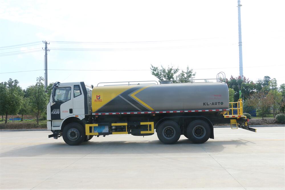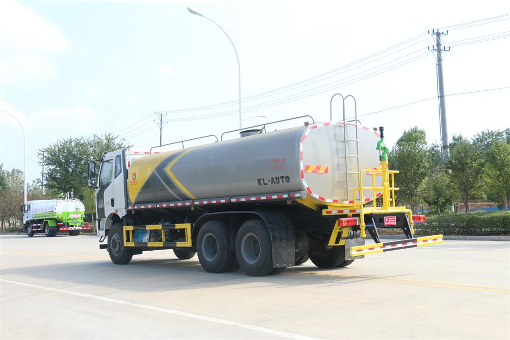 灑水車前裝有鴨形噴嘴或圓頭沖嘴,后面裝有圓柱開灑水噴嘴或蓮蓬頭噴嘴,后部有一工作平臺,裝配有水炮。后部還可裝8個噴嘴(選裝)。